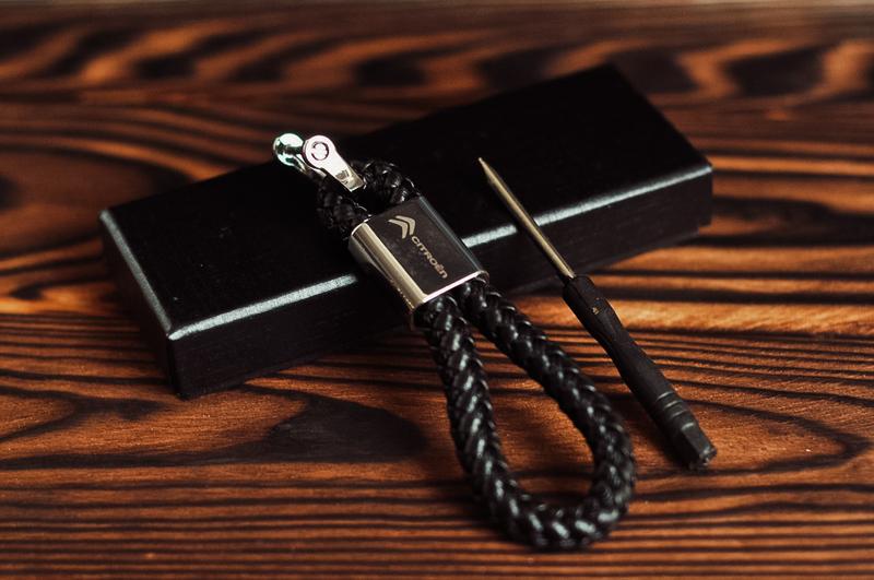 Стильний, універсальний брелок з плетеним ремінцем, відмінний варіант на подарунок, а такий подарунок буде дуже запам'ятовується, тому що в руках він буде кожен день. Брелок у подарунковій коробочці Полірована сталь, ремінець з екошкіри, лазерна насічка викрутка в комплекті