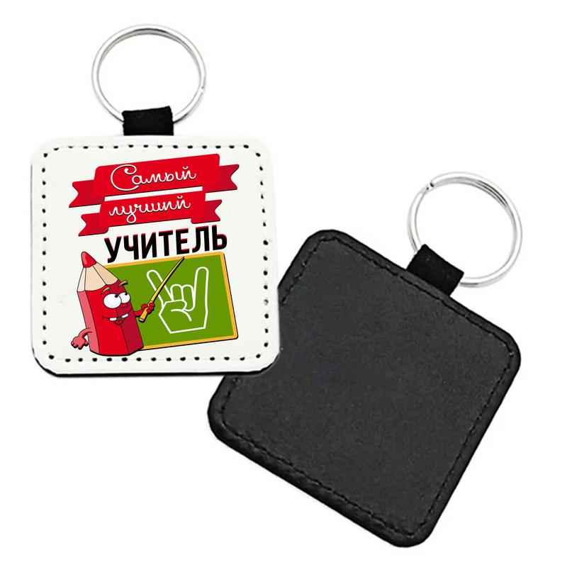 Подарочные брелки с надписью или фото Вы можете выбрать любой принт с нашего сайта или придумать свою оригинальную надпись, логотип или фото Брелок кожаный односторонний, квадратный Размер: 50 мм * 50 мм