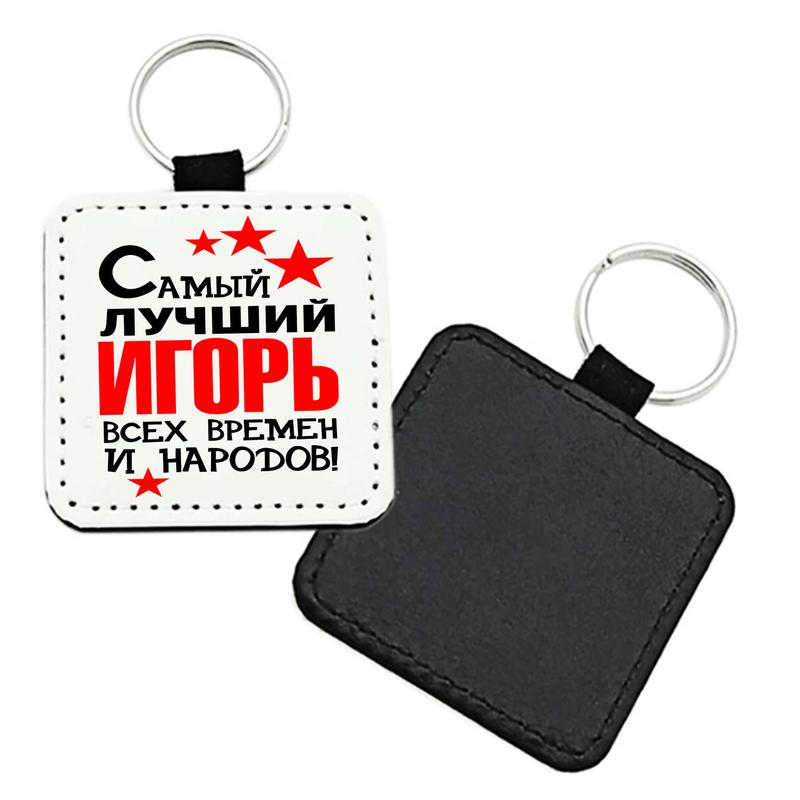Подарочные брелки с надписью или фото Вы можете выбрать любой принт с нашего сайта или придумать свою оригинальную надпись, логотип или фото Брелок кожаный односторонний, квадратный Размер: 50 мм * 50 мм