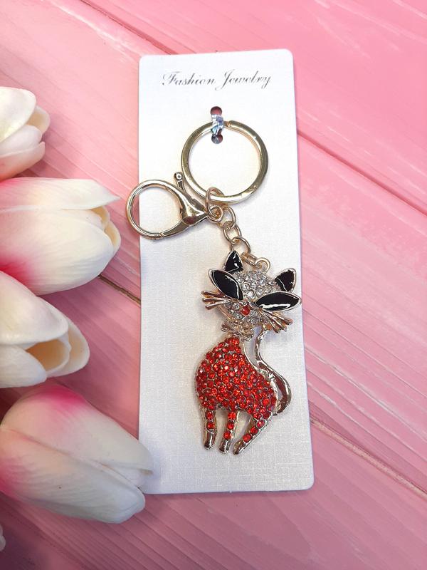 Металлический брелок со стразами "котик"