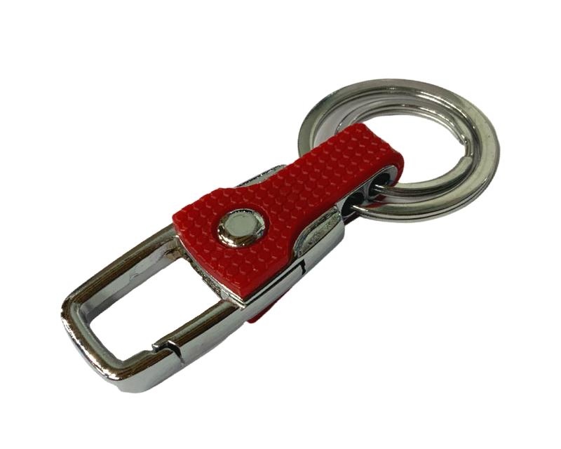 Карабин/брелок с двойным кольцом для ключей металлический 8.2см:красный