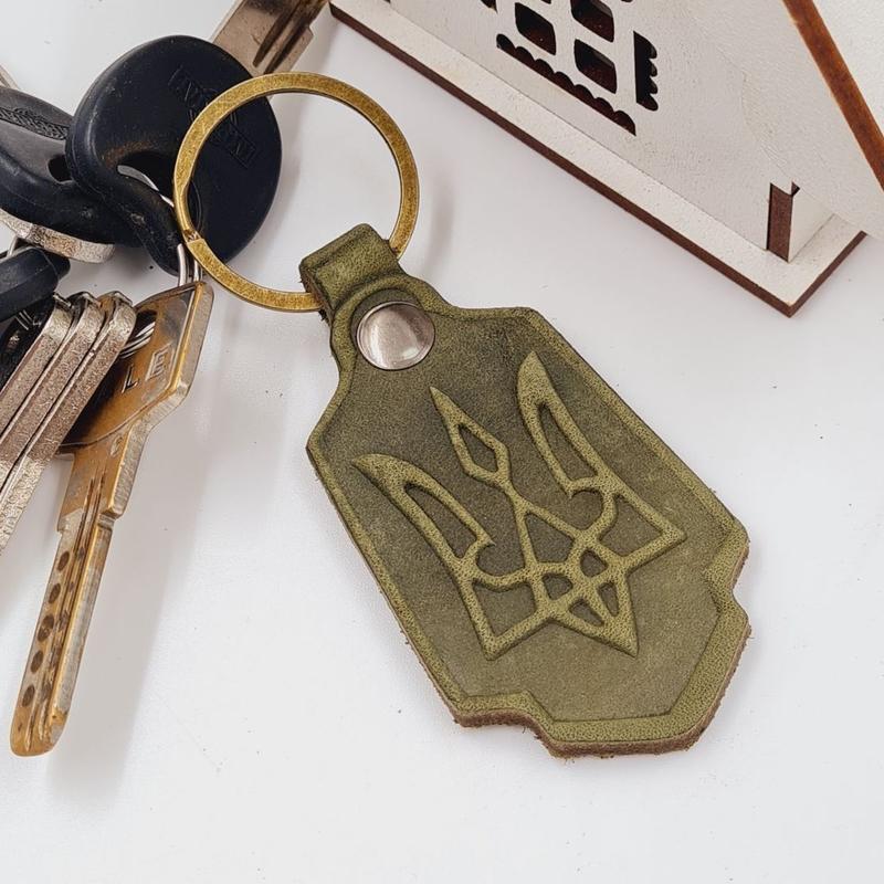 Зеленый брелок символика для ключей герб, патриотический кожаный брелок с тиснением, стиль...