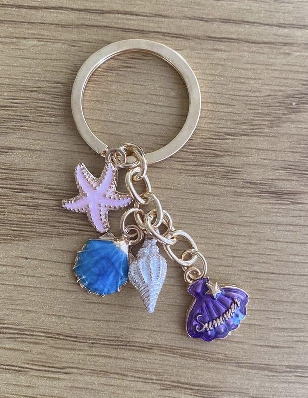Брелок з металу, золотого кольору. Мушлі вкриті емаллю. Висока якість покриття. Ідеально для ключів від дому або брелка від машини.