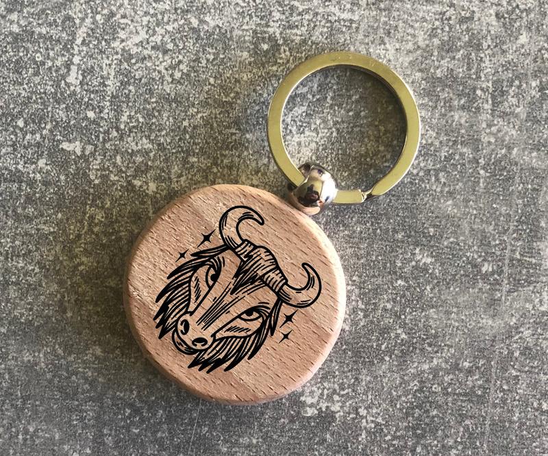 Круглий дерев’яний брелок з зображенням зодіака «телець»