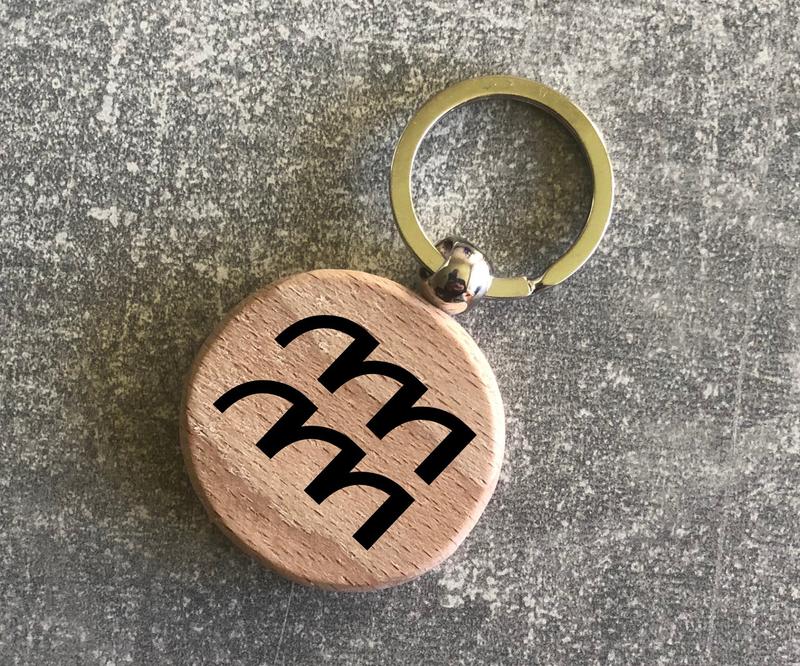 Круглий дерев’яний брелок з символом зодіака «водолій»