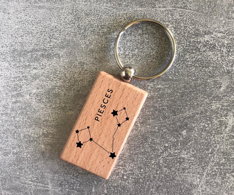Деревянный брелок размером 30х55 мм. с лазерной гравировкой зодиакального знака «Рыбы» (Pisces) Арт. 15010104012