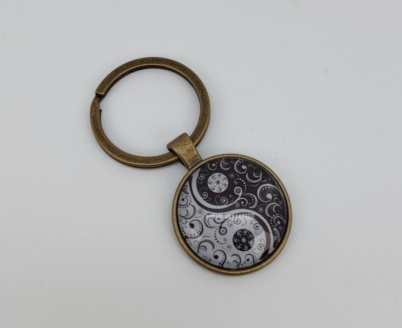 Брелок для ключей "Инь-Янь". Металл, стекло, цвет - бронза, размеры: длина общая 6,00 см., диаметр 2,80 см., вес 12.77 грм.