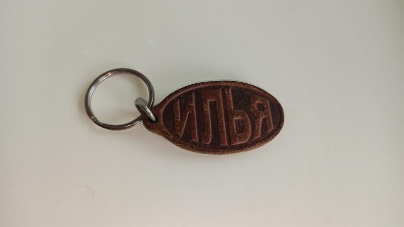 Кожаный брелок, плоский, с именем Илья. 5х3 см