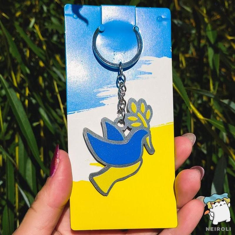 Брелок металевий двосторонній Голуб Миру. Ручна робота Фото наживо. Фотографії захищені авторським правом копіювання та розміщення на інших ресурсах суворо заборонено! Матеріал - сплав металів. Розмір 5,9*4,5 см. Колір - срібло, кольорове покриття Справжня знахідка для патріота. Стильна прикраса з символікою України. Більше оригінальних прикрас ви знайдете в каталозі нашого інтернет-магазину.