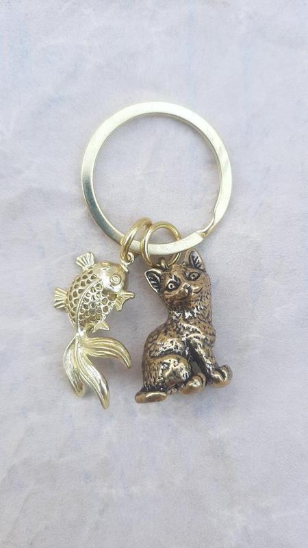 Котик с рыбкой брелок, брелок с котиком, брелок кот, котик на брелоке, брелок кошка