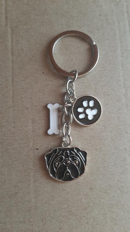 Брелок с мопсом черным, черный мопс брелок, брелок с собакой мопсом