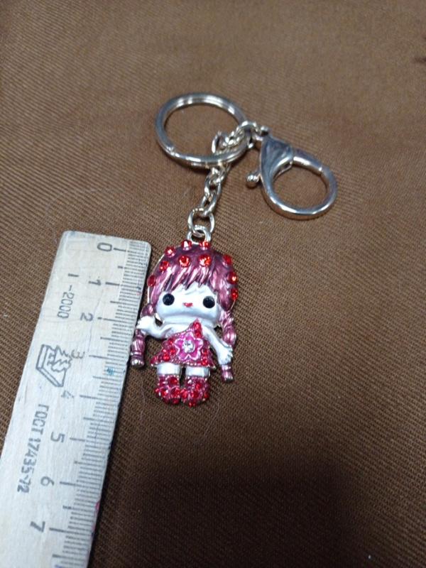 брелок девочка.. эмаль..камешки..цепочка..кольцо..можно носить как подвеску.