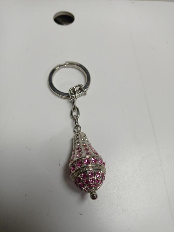брелок крапля..кулон чик..білий метал з рожевими камінцями.. можна як підвіску.
