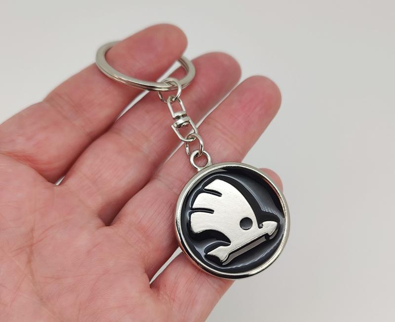 Брелок для ключей "Шкода". Металл, эмаль черная, размеры: длина общая 9,00 см., диаметр 3,50 см., вес 15.60 грм.