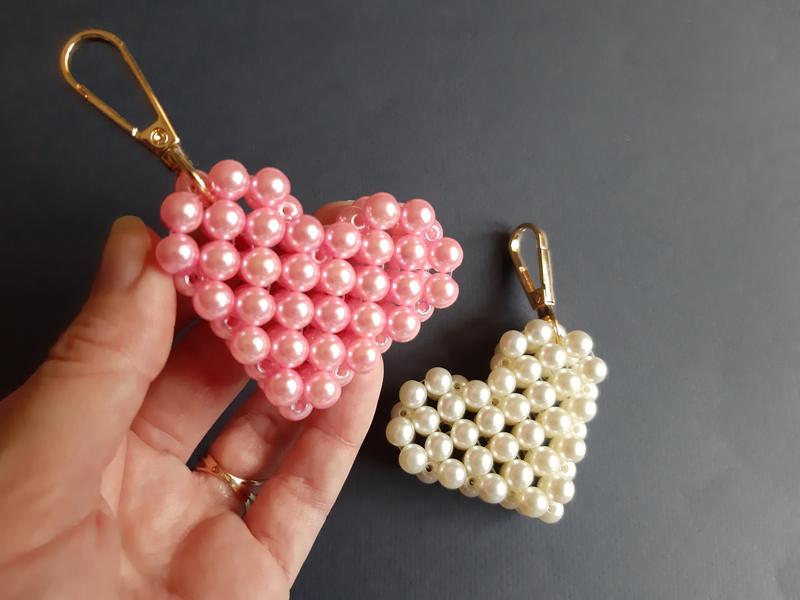Сердце брелок-подвеска на сумку или брелок для ключей, ручная работа. Брелок из бусин в форме сердца. Доступные цвета: розовый и жемчужный. Размер сердца: 6х5см Отличная идея подарок к Дню влюбленных. При заказе указывайте цвет и количество.