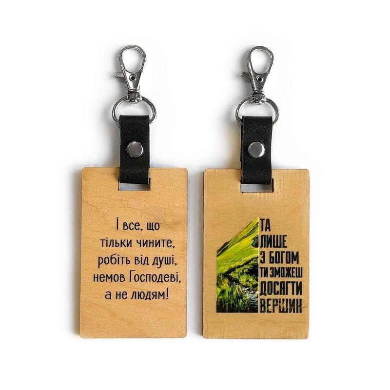 Брелок деревянный "та лише з богом ти зможеш досягти вершин / і все, що тільки" 5х8 см.