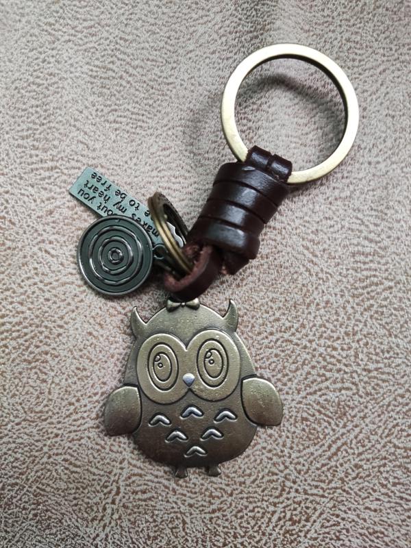 Чудовий брелок з металу та шкіри. Супер якість. Довжина підвіски - 7см, довжина сови - 4 см.