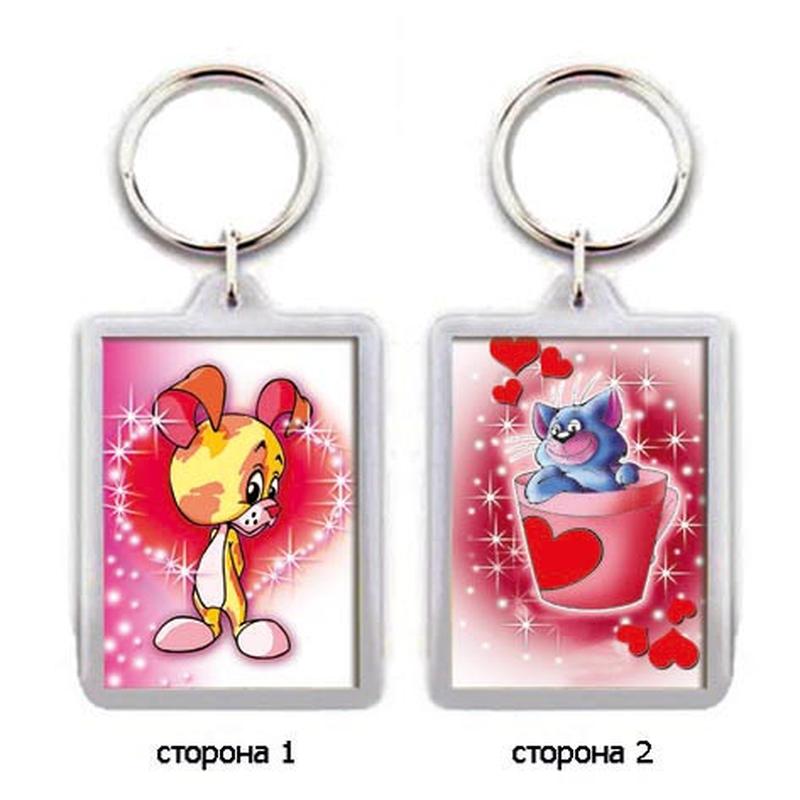 Брелок-валентинка акриловый "Котик с сердечками" - "Милый щеночек".