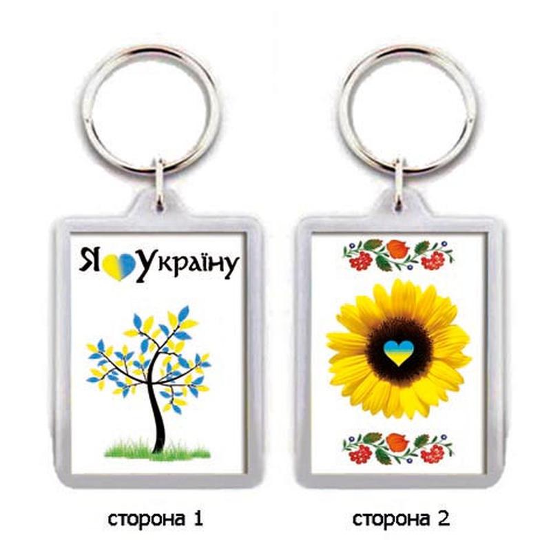 Брелок сувенірний "Я люблю Україну" з орнаментом і жовто-блакитним серцем. Если Вы хотите заказать брелки с Вашей картинкой или логотипом, перейдите по ССЫЛКЕ.