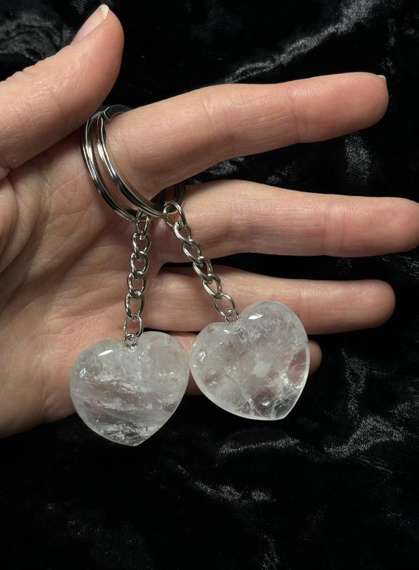 Брелок-оберег сердце из горного хрусталя, натуральный прозрачный камень для ключей и сумок...