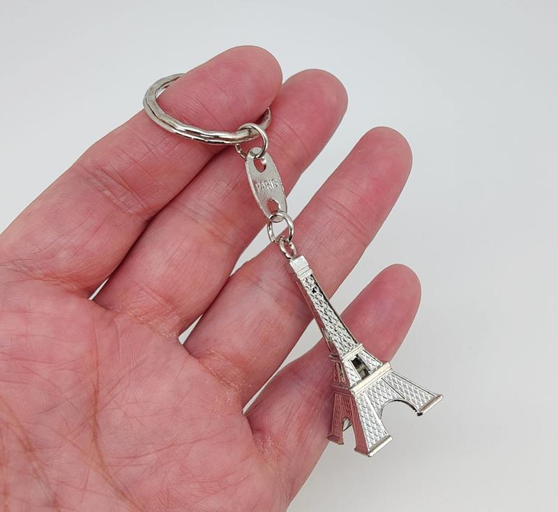 Брелок для ключей "Эйфелевая башня". Металл, (цвет серебро), высота без кольца: 4,70 см., ширина основания 2,20 см., вес 8.45 грм.
