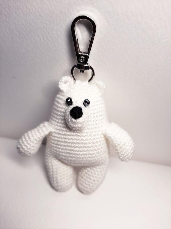 Белый вязаный медвежонок ручной работы, игрушка, брелок Цвет: белый Нитки: ирис Наполнитель: синтепон Высота: 8 см