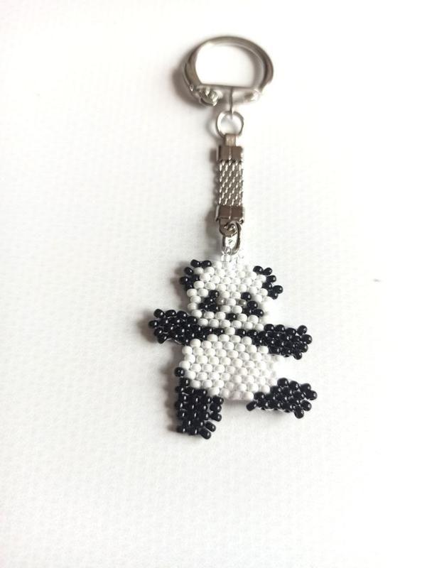 Брелок панда из бисера, брелок на подарок, брелок из бисера