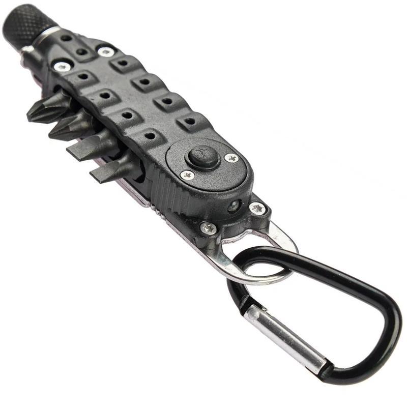 Кілька примірників у наявності Мультитул брелок Active Screwer VK210 Мультитули-брелоки Active Knives&Tools; створені спеціально для щоденного використання. Основна перевага таких інструментів полягає в їх компактності і легкості, завдяки чому вони завжди будуть з собою. Серія брелоків Active Knives & Tools включає в себе цілий ряд моделей з різноманітним набором інструментів. Screwer: 1. Карабін. 2. Біта велика плоска викрутка. 3. Біта середня плоска викрутка. 4. Біта велика хрестоподібна викрутка. 5. Біта середня хрестоподібна викрутка. 6. Ключ 5 мм. 7. Ключ на 9 мм. 8. Відкривачка для пляшок. 9. Ліхтарик. - Артикул: VK210 - Гарантія: 3 місяці - Виробник: Active - Модель: Active Screwer VK210 - Довжина загальна, мм: 96 - Ніжні: Відсутні - Упаковка: Коробка - Товщина клинка, мм: 5 - Країна виробник: Китай - Кількість інструментів: 9 - Країна походження: Україна - Маса, м: 43 - Матеріал накладки/рукоятки: Нержавіюча сталь * Характеристики та комплектація товару можуть змінюватися виробником без попередження Країна виробник: Китай Вид брелока: Універсальний Матеріал: Нержавіюча сталь Стать: Унісекс Стан: Новий Форма: Фігурна Колір: Сріблястий