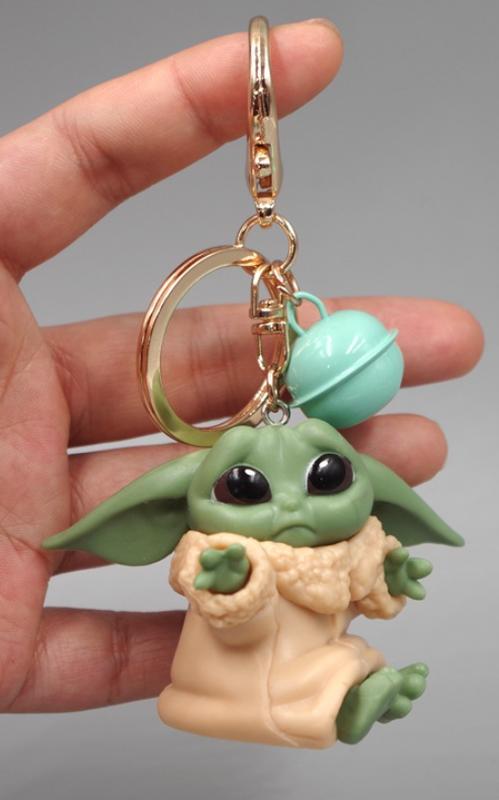 очень милый малыш.брелок на ключи как фигурка суперовый малыш примерно 5 см на 7 .7см. кольцо и карабин.очень круто!!!общая длина 13 см. фурнитура золотистая .бубенчик звенит. милота! .Star Wars Baby Yoda