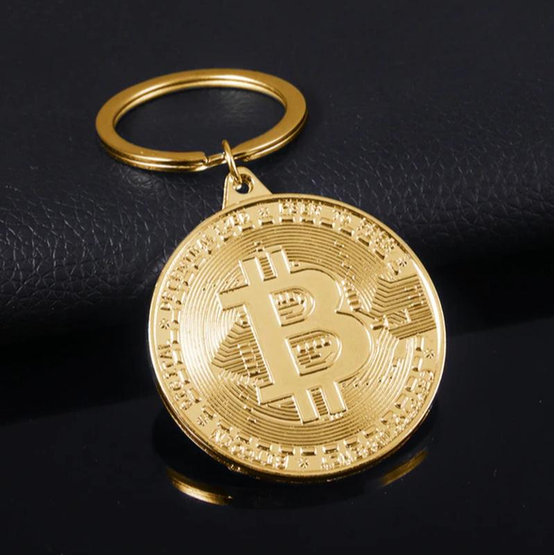 брелок на ключи металл. 4 см сама монетка. красивая очень.приятно держать в руках.просто брелок-монетка.неценная)= СУВЕНИРНЫЕ монетки БИТКОИН разный рисунок с 2-х сторон
