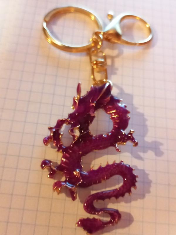 Брелок золотистый металл сувенир дракон эмаль-фиолетовый крутой обьемный