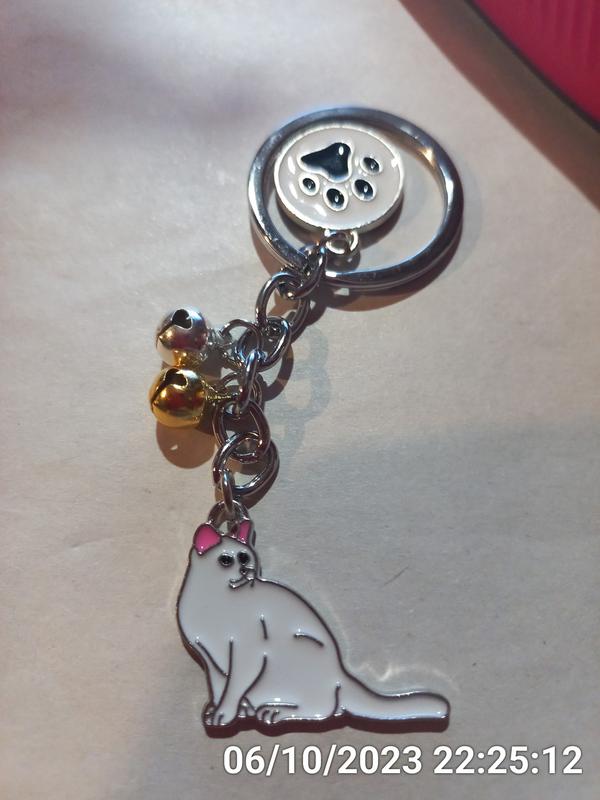 Брелок на ключі метал емаль білий кішка кіт сердечко лапка
