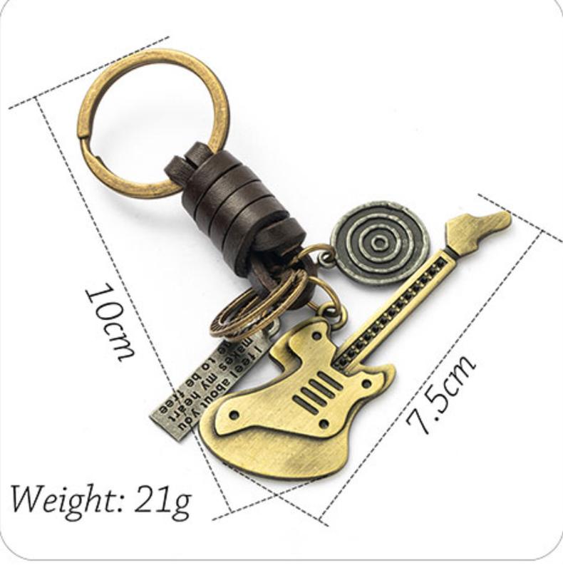 Брелок на ключи металл гитара оплетка под кожу цвет как бронза