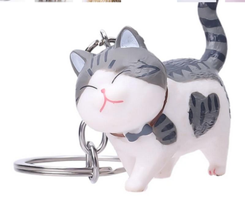 Брелок на ключи кот котик обьемный 3d крутой пластик серый с белым сбоку-сердечко