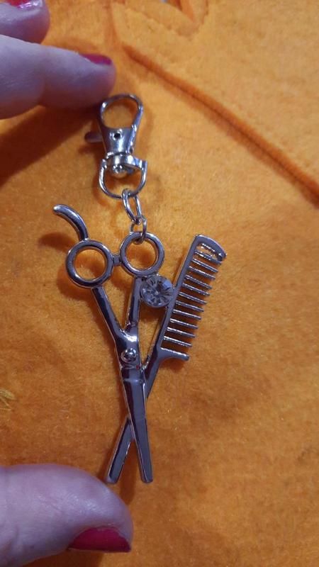 Брелок мастеру парикмахер стилист крупный ножницы расческа металл камень