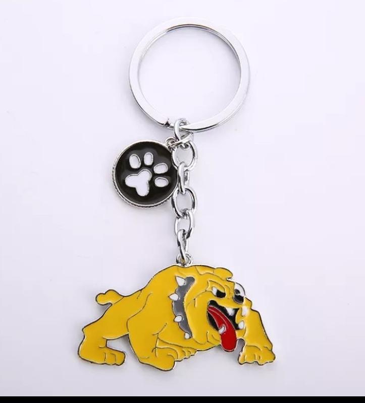 Брелок рыжий бульдог собака злой металл эмаль кружок - лапка