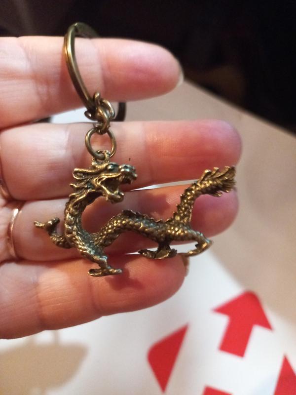 дракон -латунь. фурниру -медная. это хороший брелок.отличное качество. сам дракон 5см на 2.5 см. год 2024-год зеленого дракона!