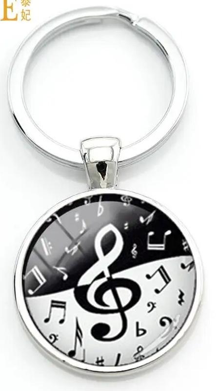 Брелок металл подарок музыканту скрипичный ключ серебристый круглый ноты