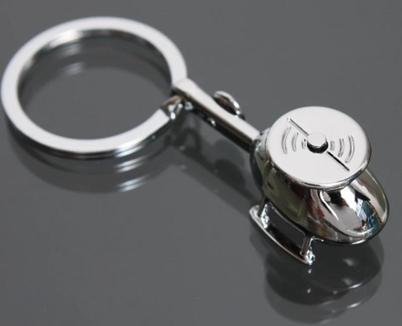 Брелок на ключи металл вертолет крутится пропеллер цвет серебристый типа сталь