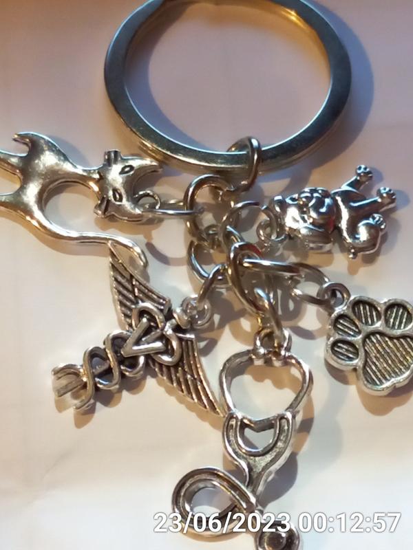 Брелок на ключи ветеринар доктор и собака кошка лапка фонендоскоп кадуцей 5 подвесок