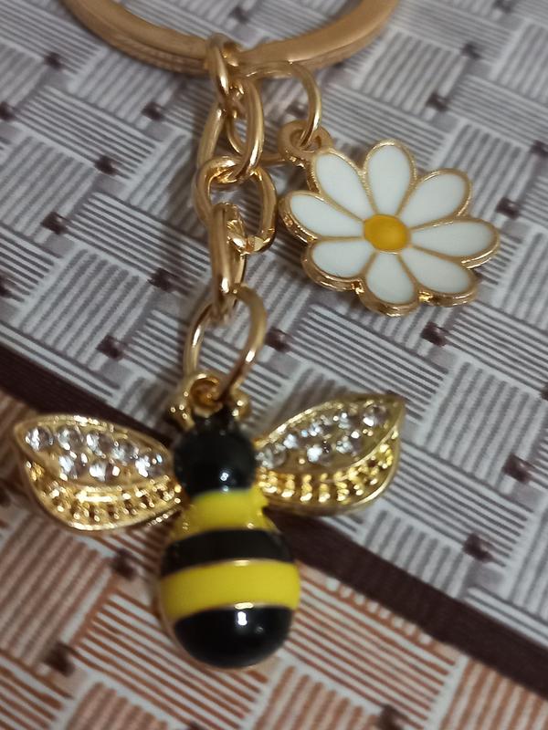 Брелок на ключи золотистый металл насекомое пчела и пчелка ромашка