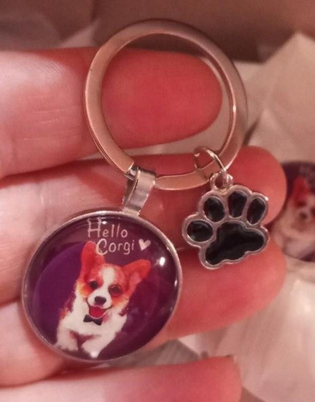 Брелок на ключи стекло и металл порода собака корги вельш-корги и лапка черная