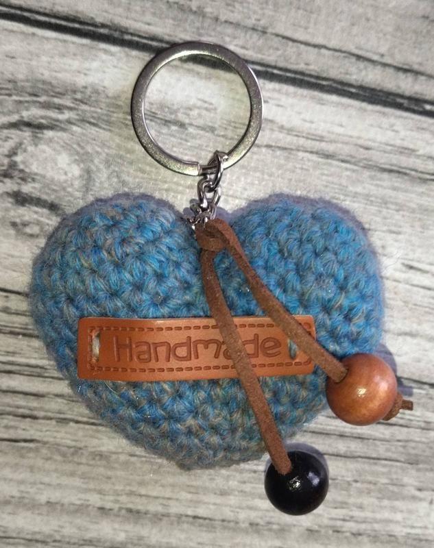 Вязаный брелок сердечко (джинс)– валентинка ручной работы – брелок амигуруми - оригинальны...