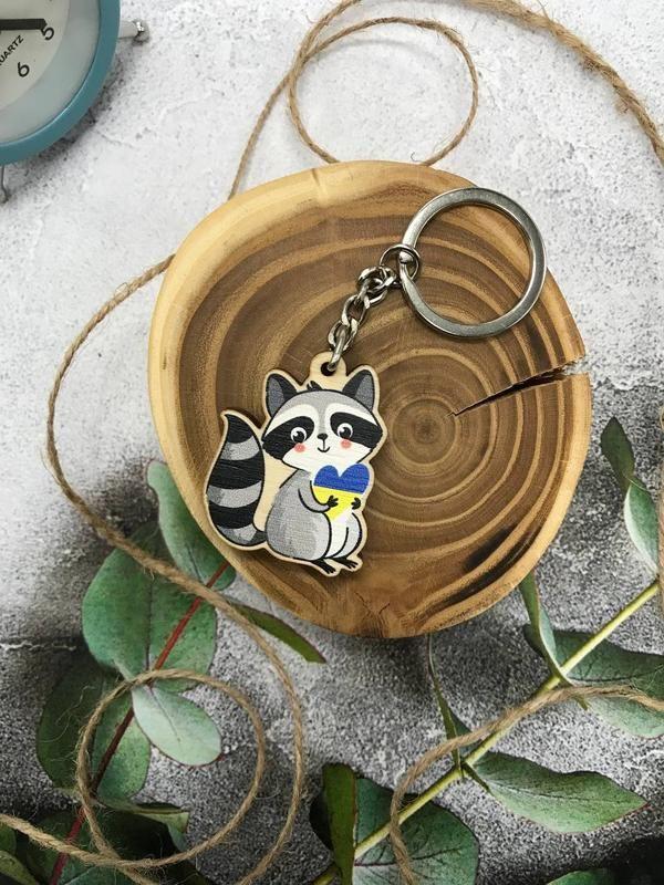 Деревянный брелок "енот с сердцем"