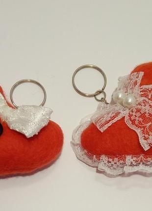 Набор брелков из двух сердец. Мягкие. Подарок для влюблённых или свадьбу, годовщину свадьбы , как символ вечной любви. Дополнительные характеристики: Материал : Бусины Материал : Ленты