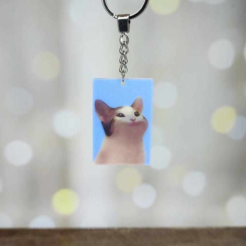 Стерео-варіо брелок "popcat. поп кіт. мем". брелок, що переливається (брел0122)