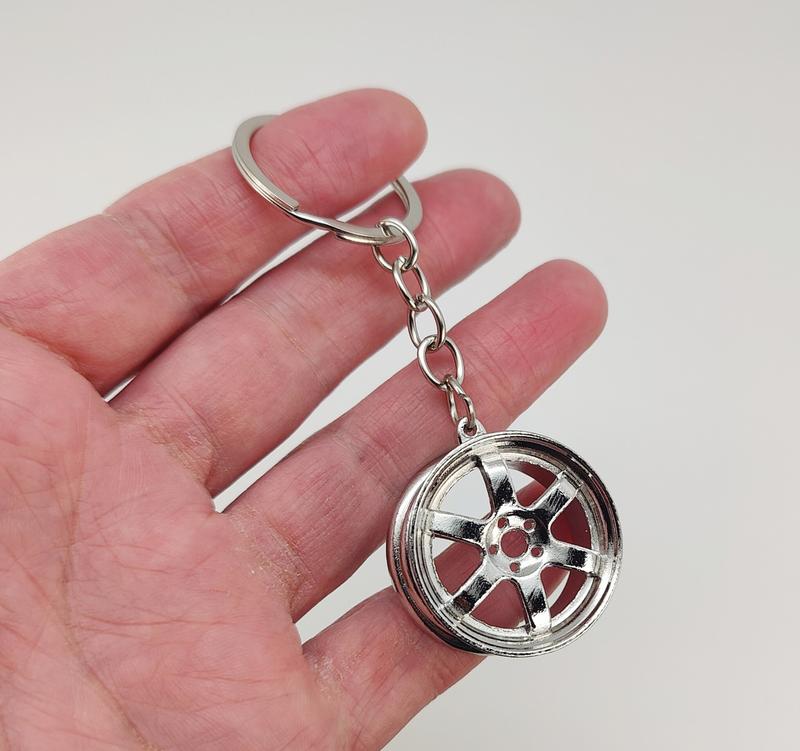 Брелок для ключей "Колесо". Металл, размеры: длина общая 9,00 см., диаметр колеса 3,20 см., толщина 1,50 см., вес 15.10 грм.