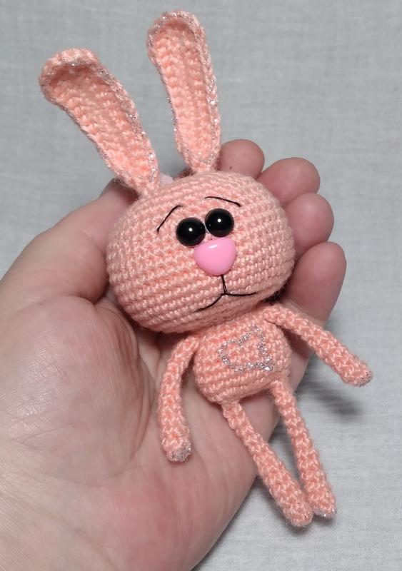 Зайченя брелок вязаная игрушка ручная работа экологически чистая оригинальный подарок, потому что каждая игрушка индивидуальна и неповторима, сделана с любовью и душой Размер - 14 см