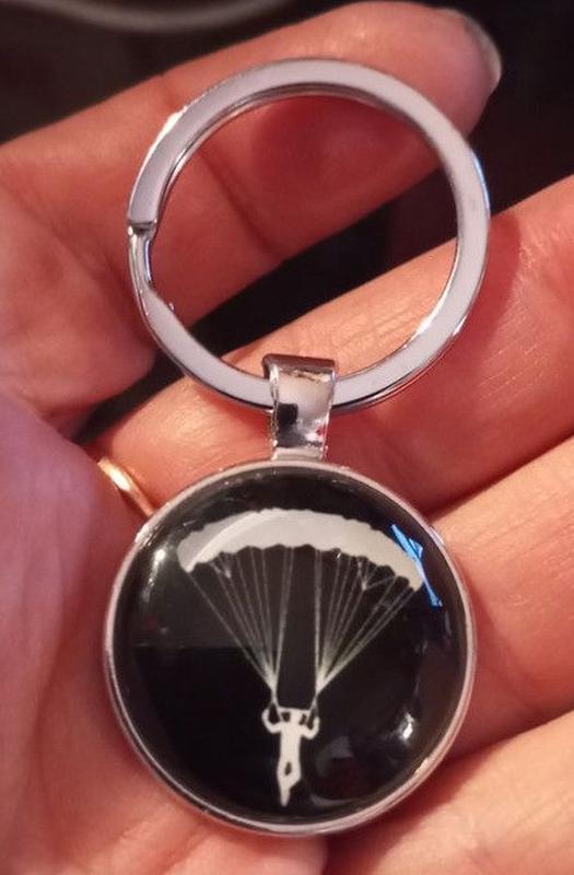 Брелок на ключи металл и стекло парашют парашютист