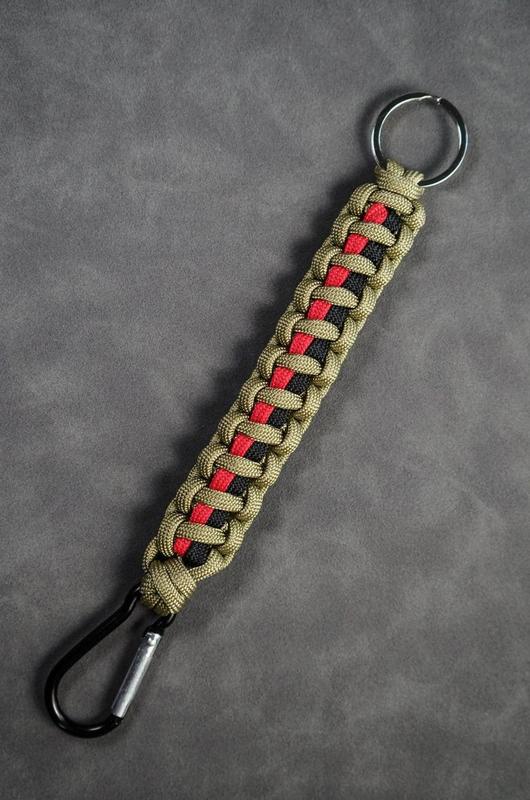 Брелок из паракордового шнура с черным карабином и кольцом 19см